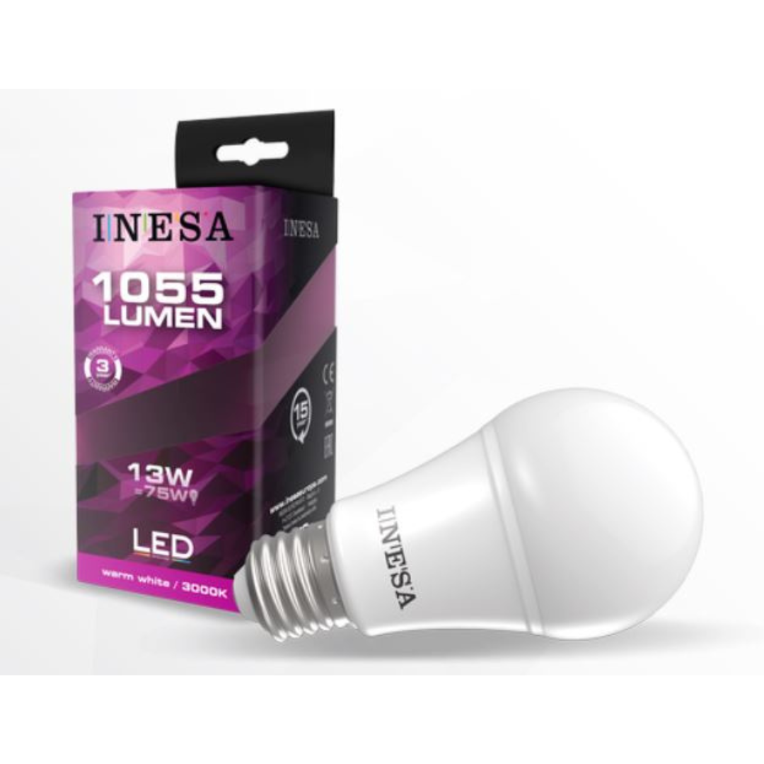 LED spuldze 13W E27 3000K 1055lm A60, INESA