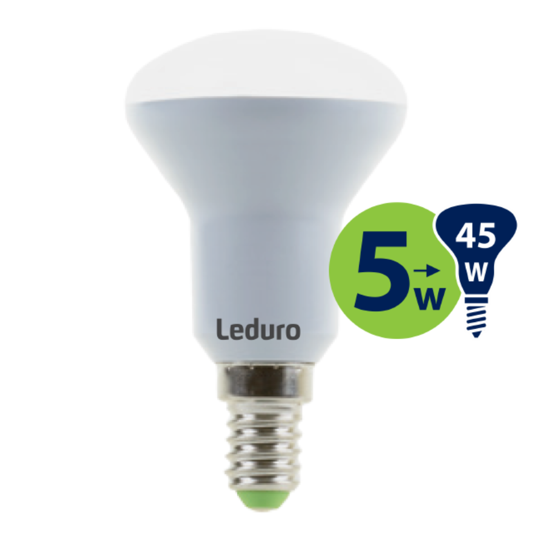 LED spuldze 5W, E14, 3000K, 400lm, R50, Leduro