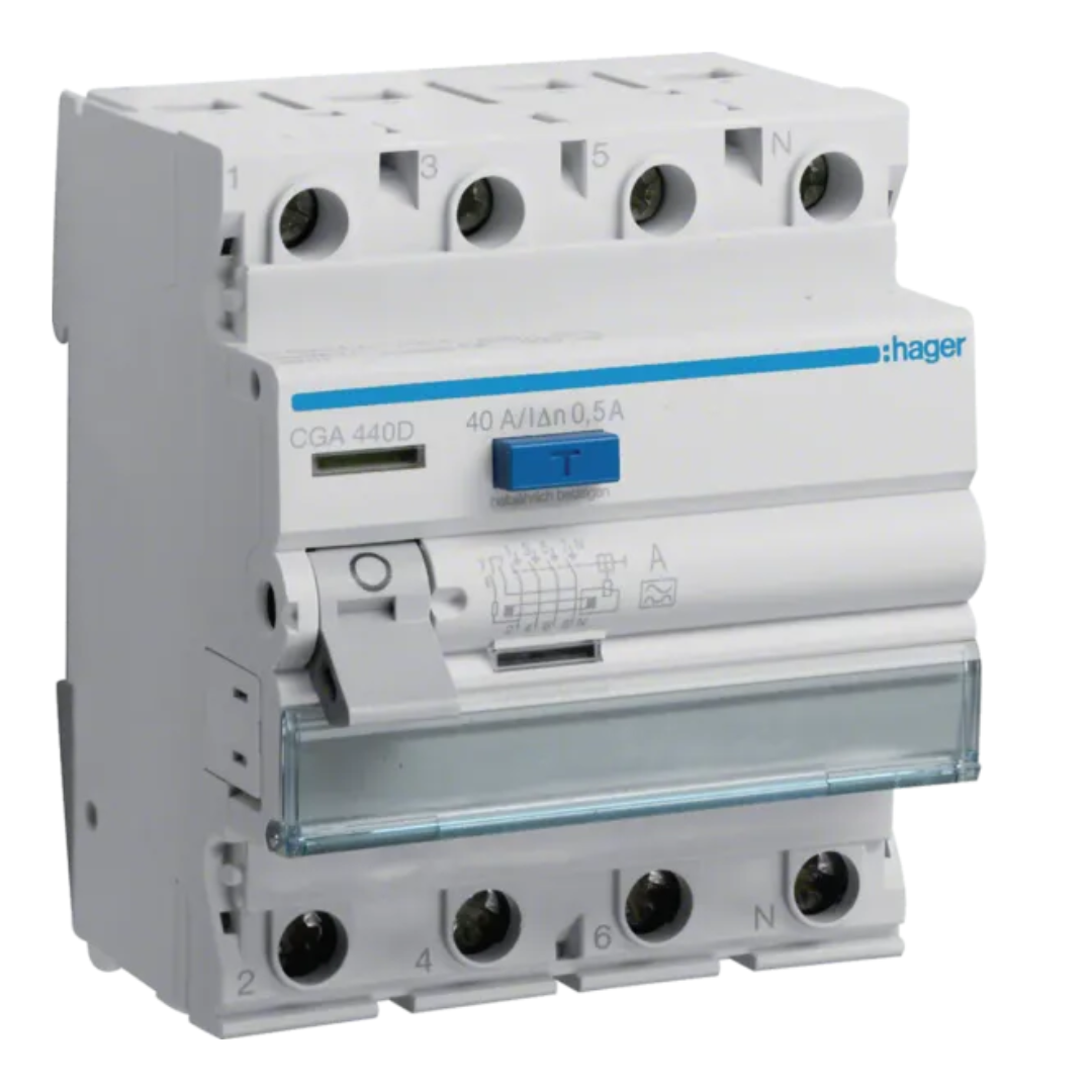 Noplūdes strāvas slēdzis 4P 40A 500mA, A type, HAGER
