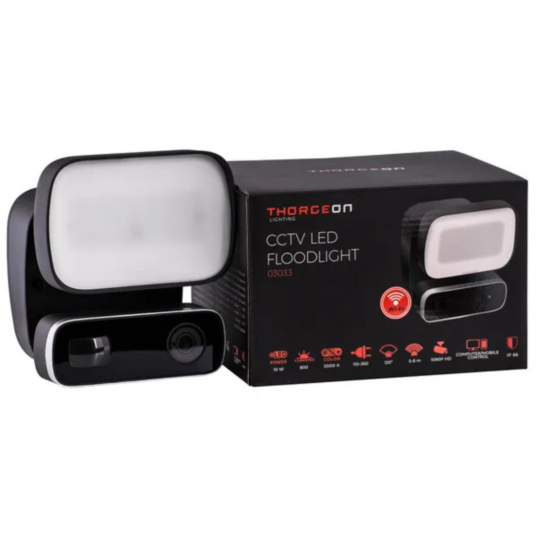 Prožektors LED ar kustības sensoru un videokameru, ССTV, 10W, 3000K, 800Lm, IP66, THORGEON