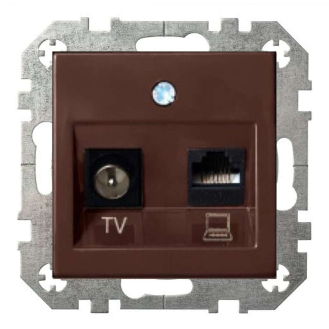 RJ45 datu kontaktligzda CAT6E UTP + TV kontaktligzda, brūns, Liregus EPSILON
