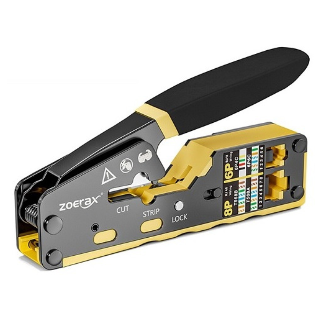 Krimpošanas instruments, kas paredzēts CAT5, CAT5E, CAT6 un CAT6A savienotājiem (8P8C, 6P6C, 6P4C), ideāli piemērots tīkla kabeļu krimpošanai un griešanai.