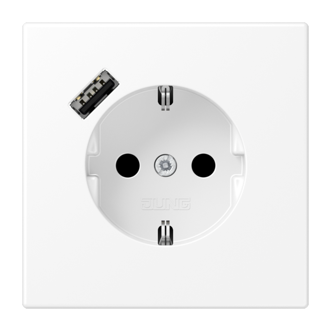 Rozete ar USB-A ligzdu un bērnu aizsardzību, matēta sniegbalta, LS990