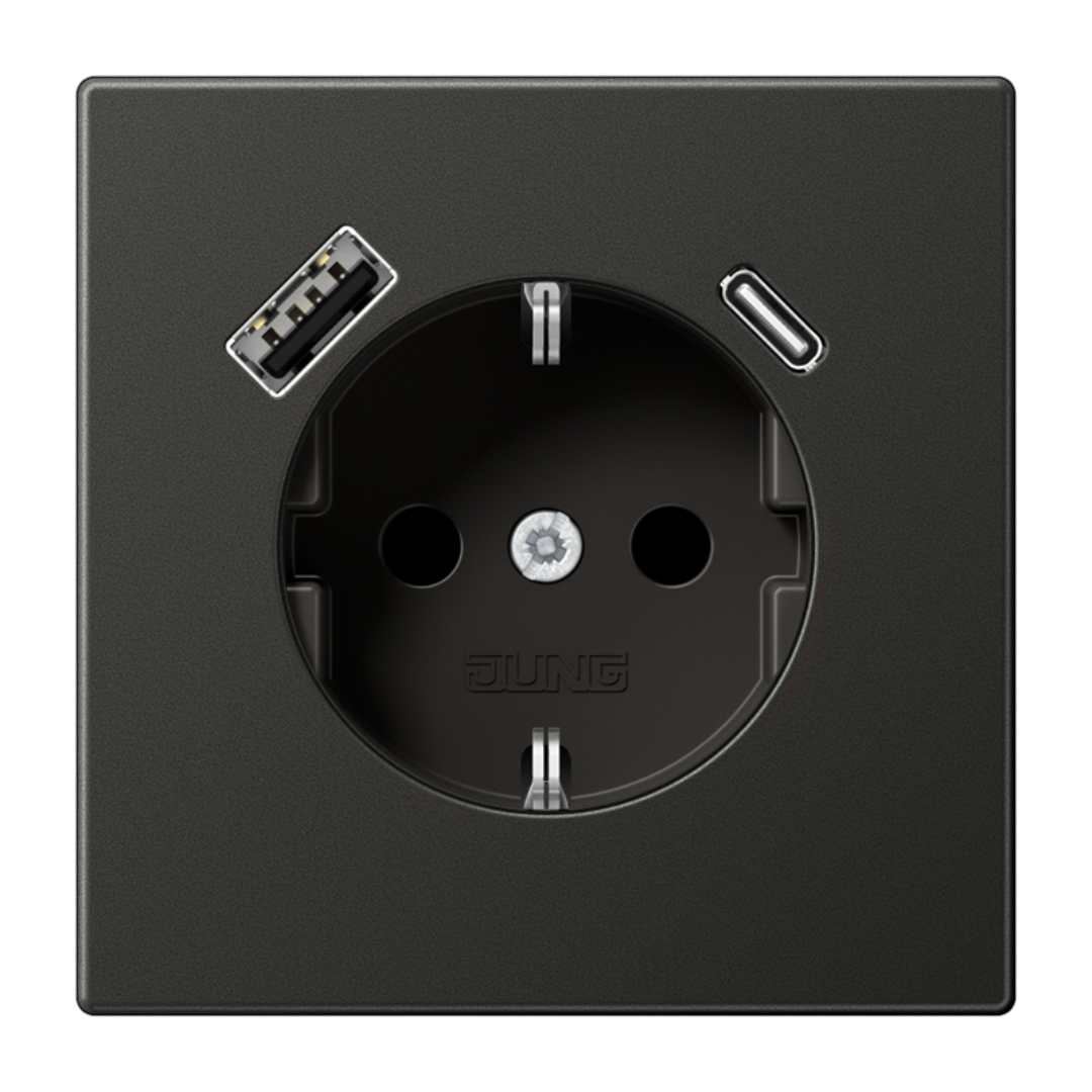 Rozete ar USB-A + USB-C ligzdu un bērnu aizsardzību, antracīts, LS990
