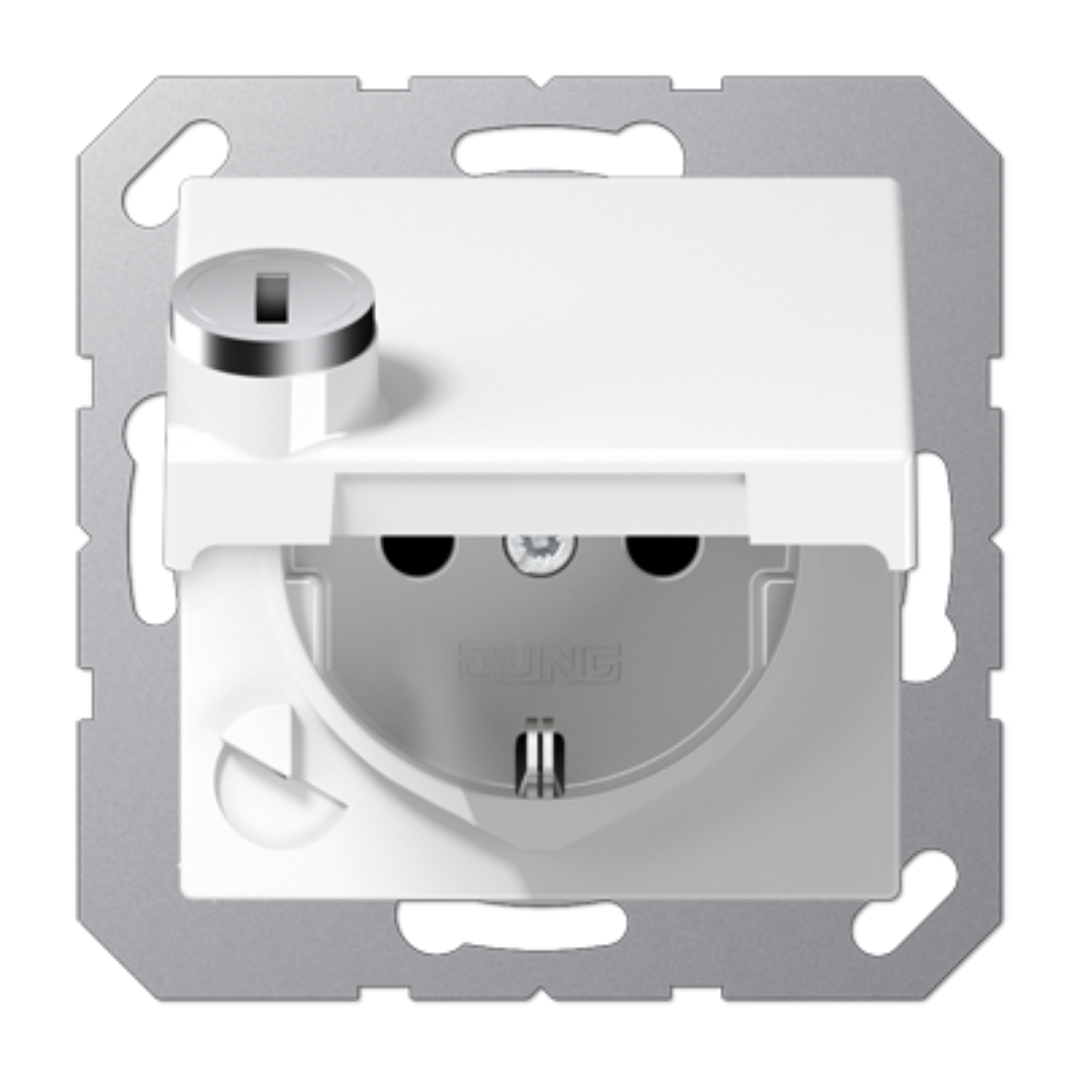 Rozete ar vāciņu IP44, slēdzama ar atslēgu, balta, A500