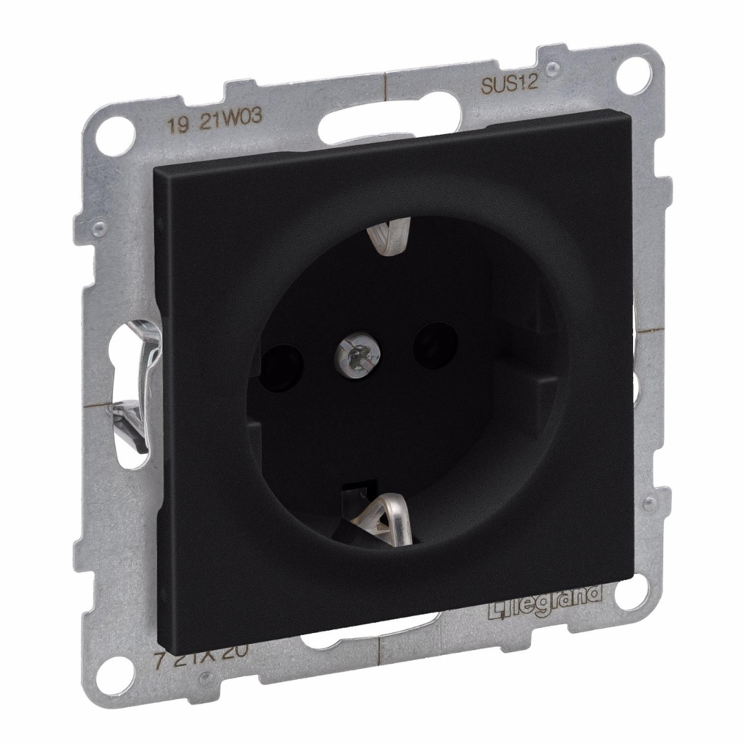 Rozete ar zemējumu, 16A , ar bērnu aizsardzību, melna, SUNO