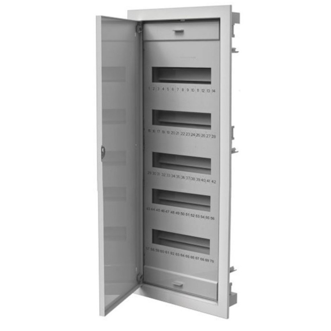 Sadales skapis zemapmetuma 60+10 mod., ar metāla durvim un klemmem N+PE, ar stiprinājumiem reģipsī, IP40, Pawbol