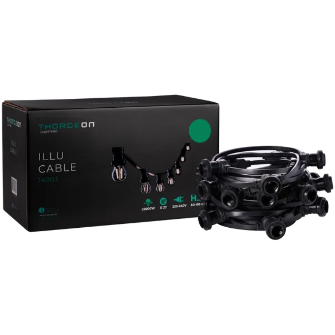 Spuldžu virtene ar 40 patronam uz E27 (bez spuldzēm), āra teritorijām un iekštelpām, garums 21.5m (var savienot savā starpā vairākas), IP44, THORGEON