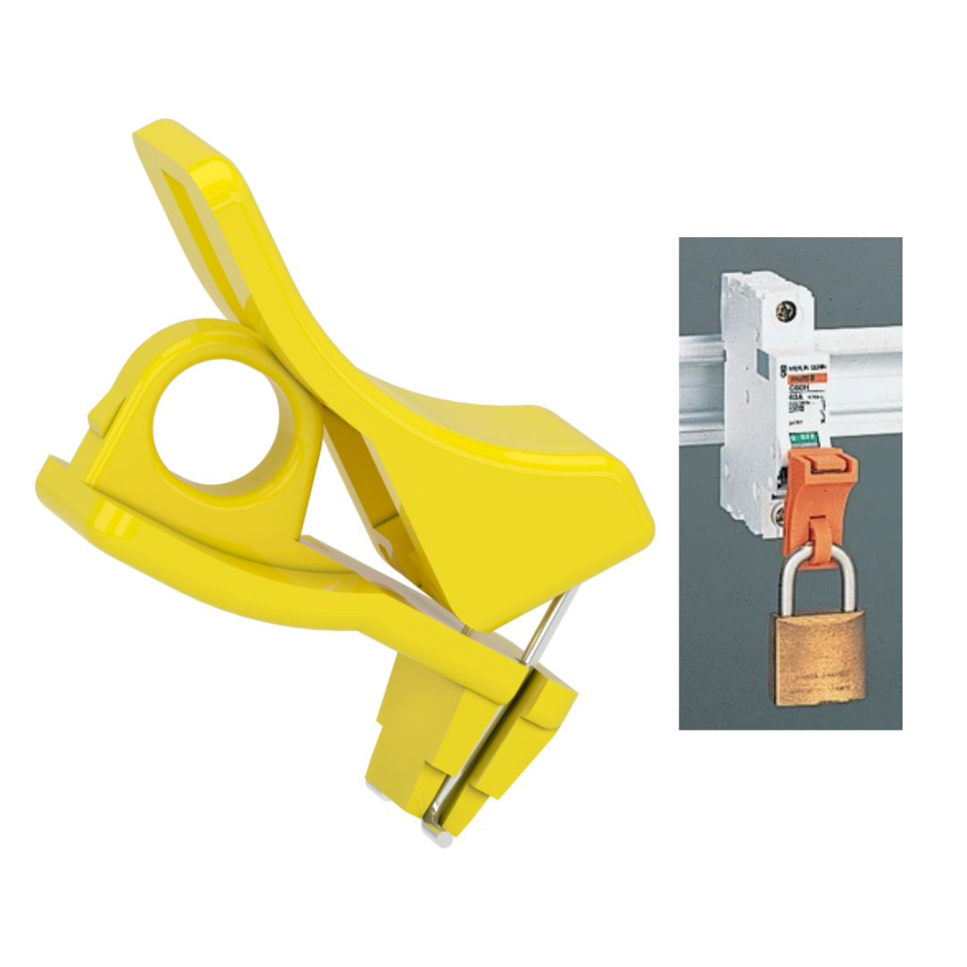 Uzkarināma bloķešana 1 polu - 4 polu automātslēdzim, slodzes slēdzim, noplūdes slēdzim, noplūdes automātam, fiksējas vietā kas paredzēta plombešanai, piekaramā atslēga nav komplektā, Schneider Electric