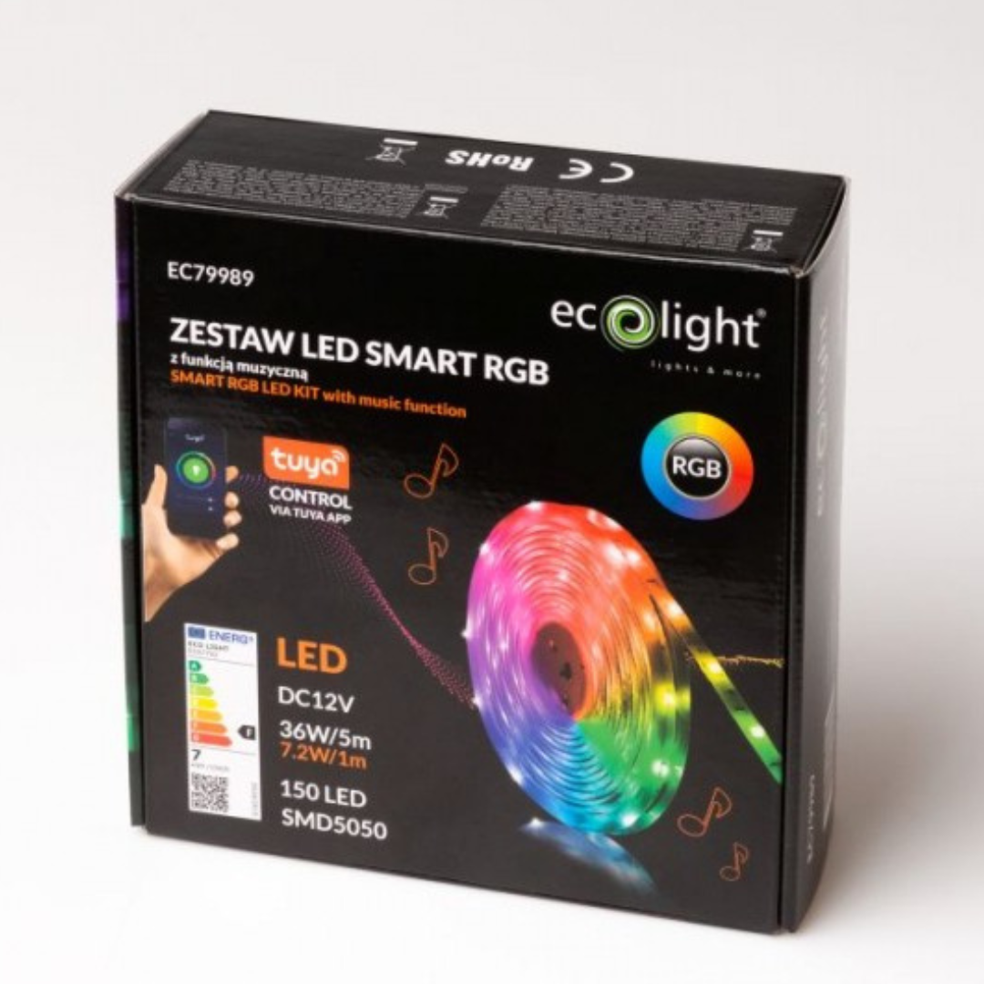 Viedā LED lente, komplekts, 7.2W/m, RGB, IP20, 5m, ar vadības iespēju no telefona - Tuya, ECOLIGHT