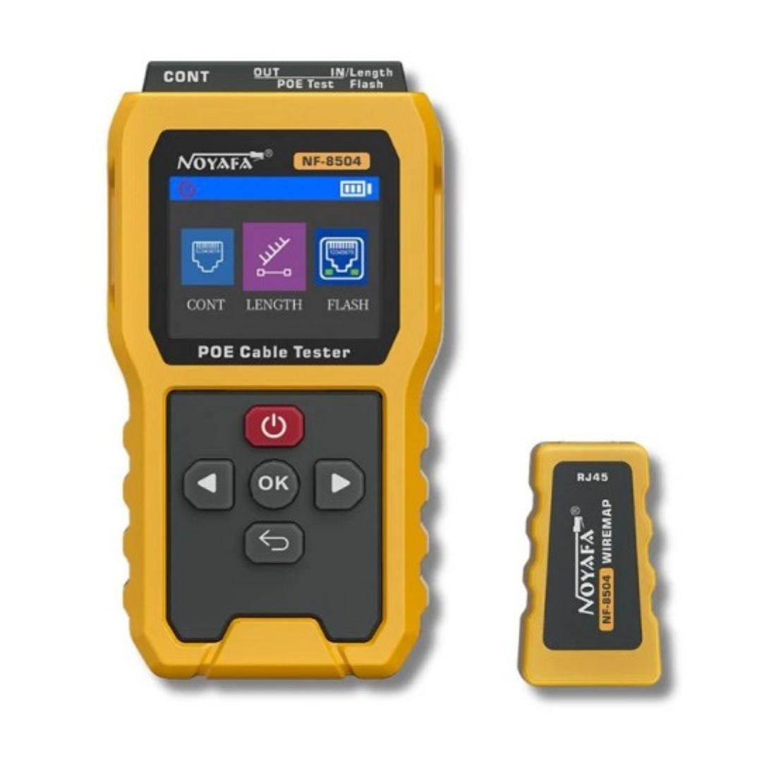 Šis daudzpusīgais testeris pārbauda Ethernet kabeļa kvalitāti, tostarp vadu secību, īssavienojumus un pārtrauktas ķēdes, un analizē PoE ierīces, identificējot PoE standartu (IEEE 802.3af/at/bt vai nestandarta), mērot spriegumu un strāvu starp barošanas avotu un pievienoto ierīci un aprēķinot jaudas piegādi. Tas var arī izmērīt kabeļa garumu, noteikt kļūmes, piemēram, pārrāvumus, un izsekot kabeļu maršrutus, izveidojot savienojumu ar tīkla iekārtām, izmantojot porta zibatmiņas funkciju.